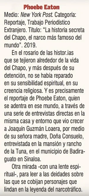 Mexico's International Journalism Award 2021 certificate and medal.